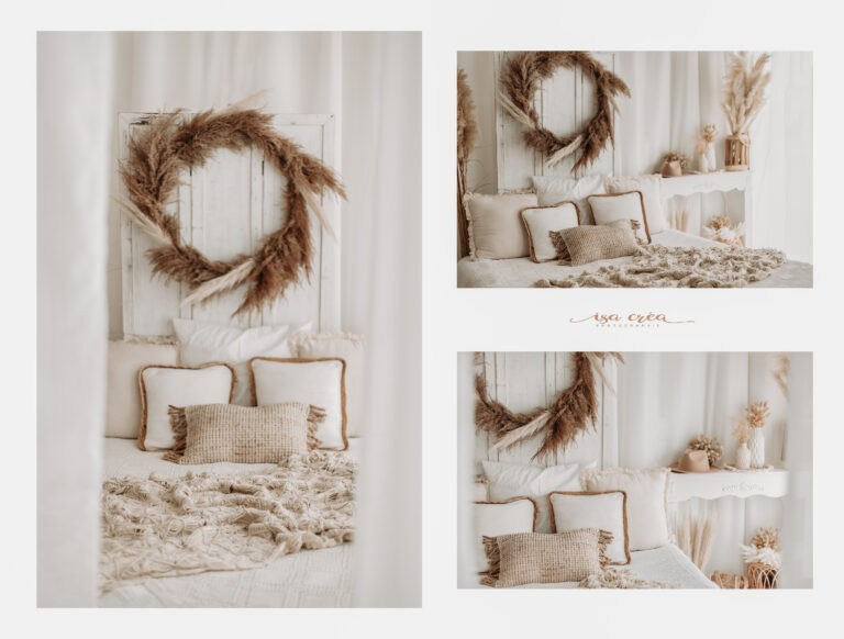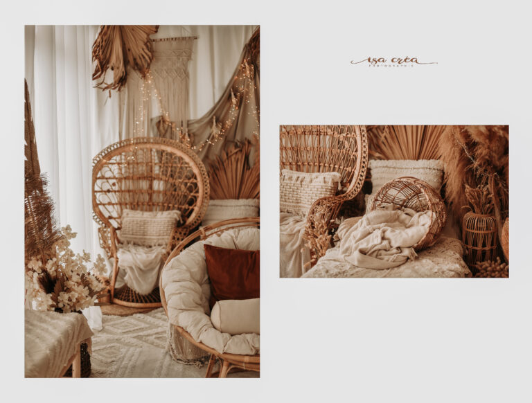 Je vous accueille donc aujourd’hui dans mon studio de 65m² à Crouay, près de Bayeux dans le Calvados. Un bel espace aménagé où je sublime vos formes de femmes enceintes et câline vos bébés pour créer ensemble vos souvenirs. Je travaille depuis quelques semaines en lumière naturelle et dans un style bohème. Mon studio regorge de tenues de créateurs et d’accessoires.